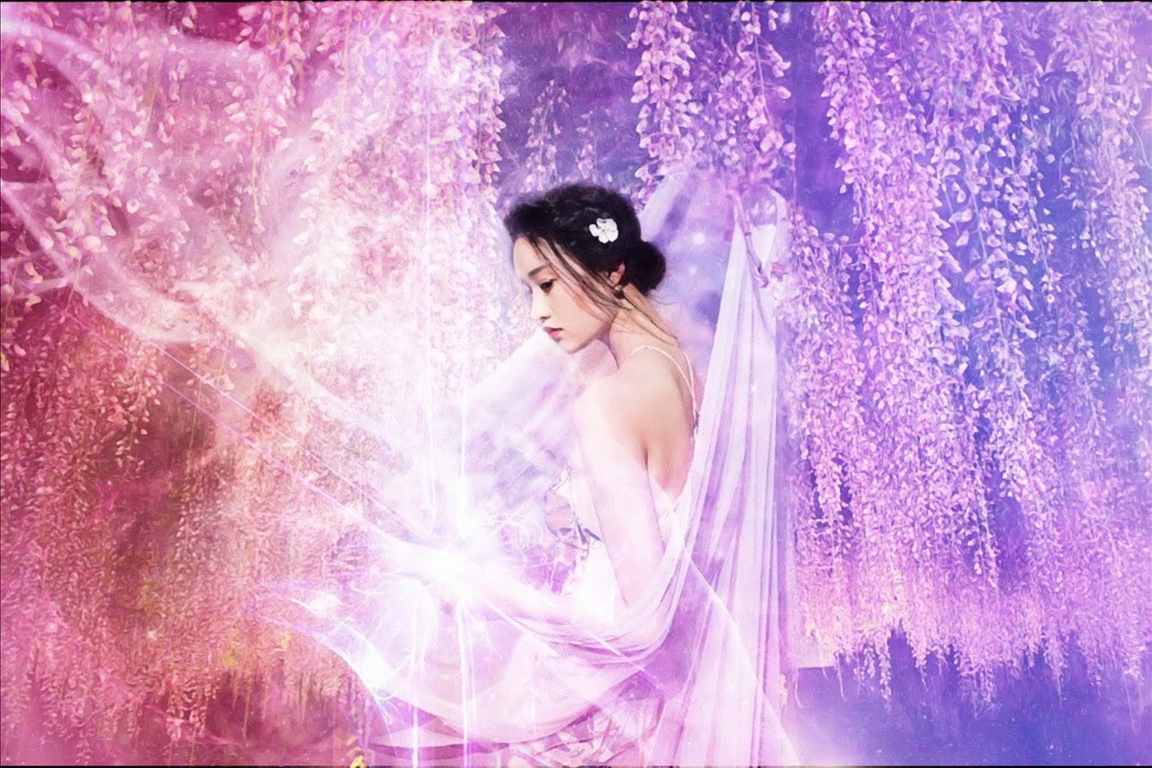 背景画の後方は少し光が射している感じなので、髪の毛の一部を「暗室」の「覆い焼き」で軽くなぞります。