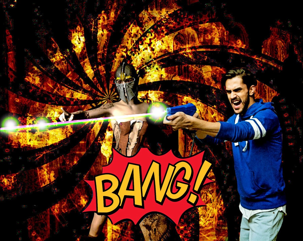 1. 背景画像に対し、切り抜いた人物画像の配置と大きさを決める。