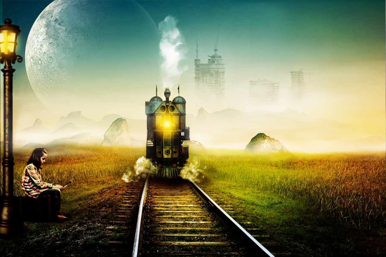 実際にこのような風景はありません。私が既存の写真を4枚用いて合成加工し、作り出した世界です。