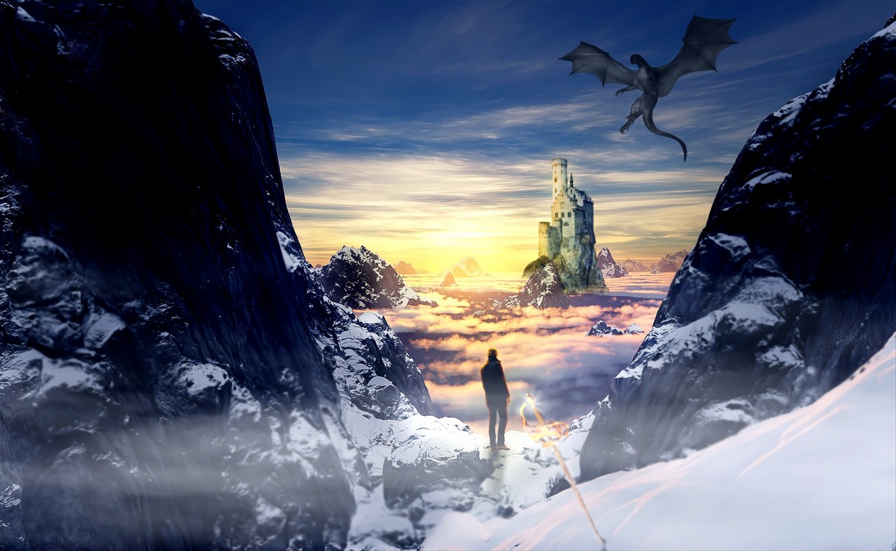 そこへお城と人物、ドラゴン、剣を加えただけですけどね(苦笑)