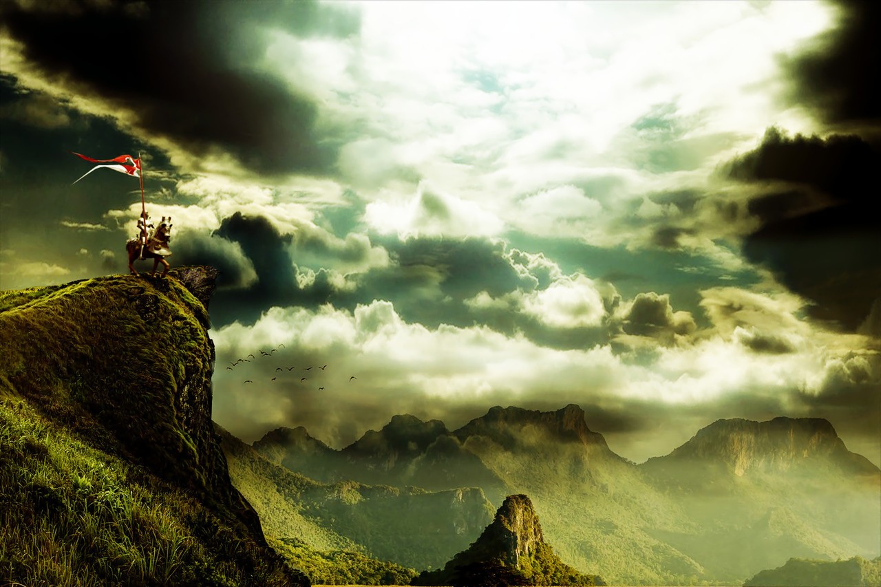 騎士と旗は別々の画像から切り抜いたものです。
