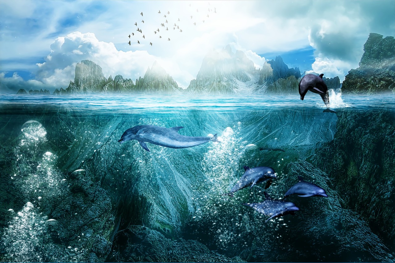 イルカはデジタルアートですが、それ以外は普通の写真を合わせてます。