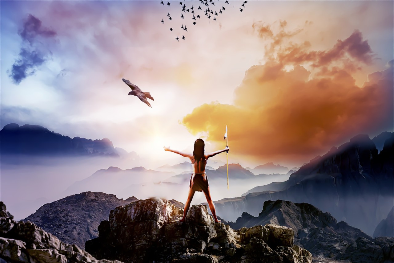 ちょうど槍を持つ少年(?)が両手を広げてる画像があったので、「これはいい!」と使用しました。