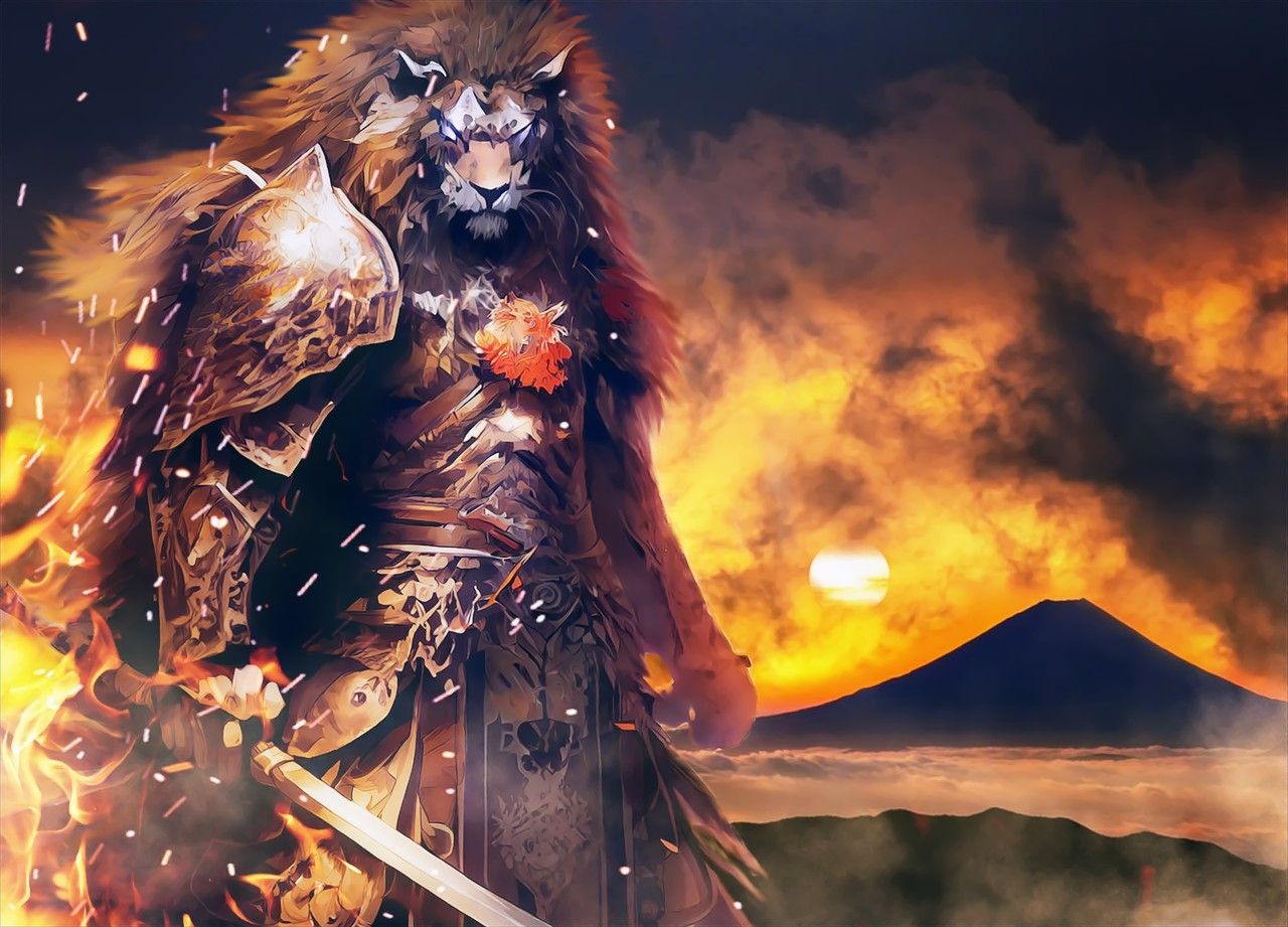 背景画像は富士山です。鎧が和風な感じだし、武器が太刀なので。