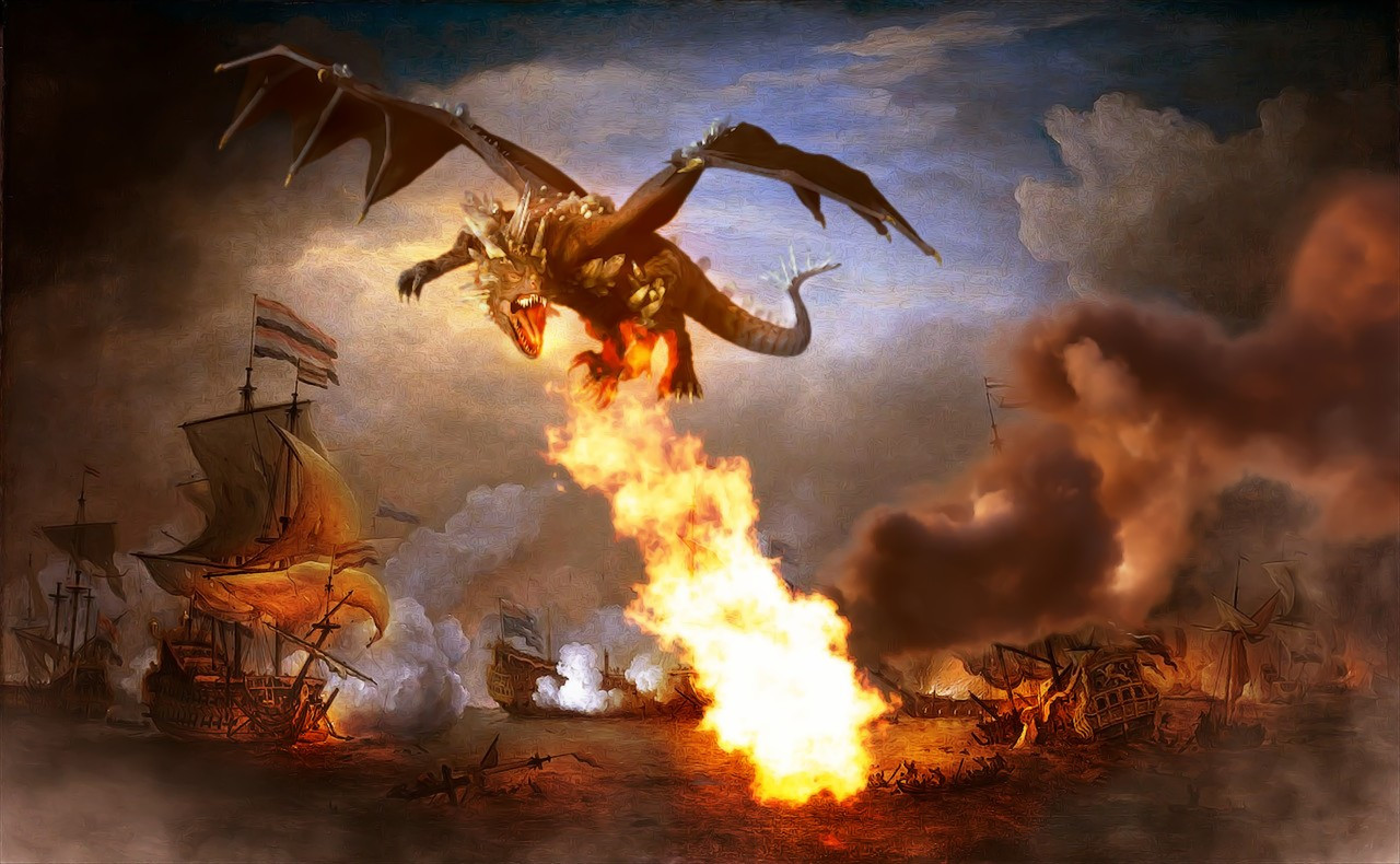 下の画像は絵画(デジタルアートかな?)にドラゴンを加えました。