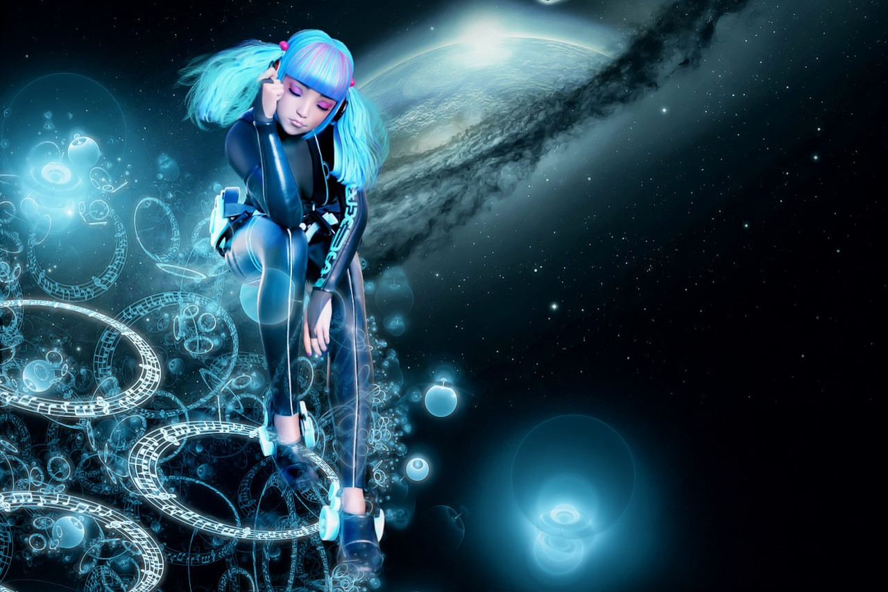 上の人物画像(3DCGですが)を見た時、宇宙的規模のスピリチュアルをイメージしました。ただ、どう表現するかで悩んで音楽を聴きました。