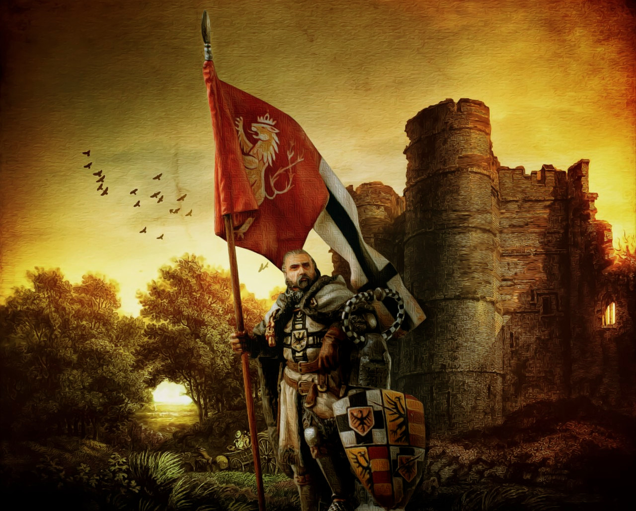 次は、絵画風な背景画と置き人形の騎士を合わせました。